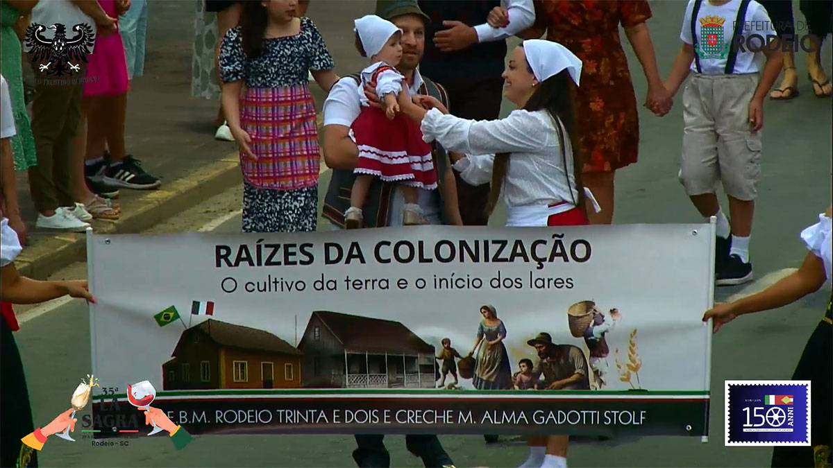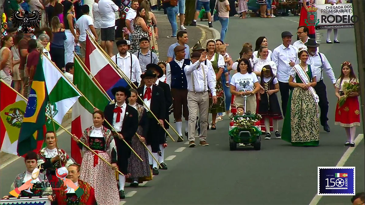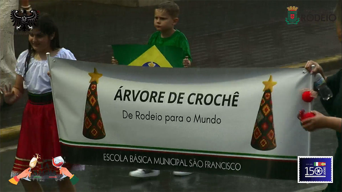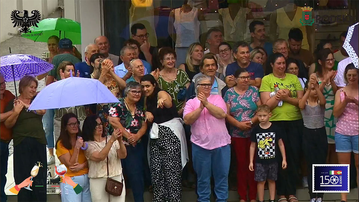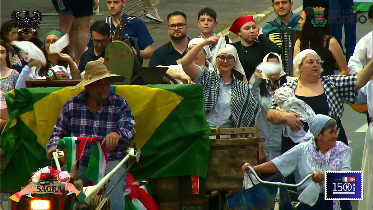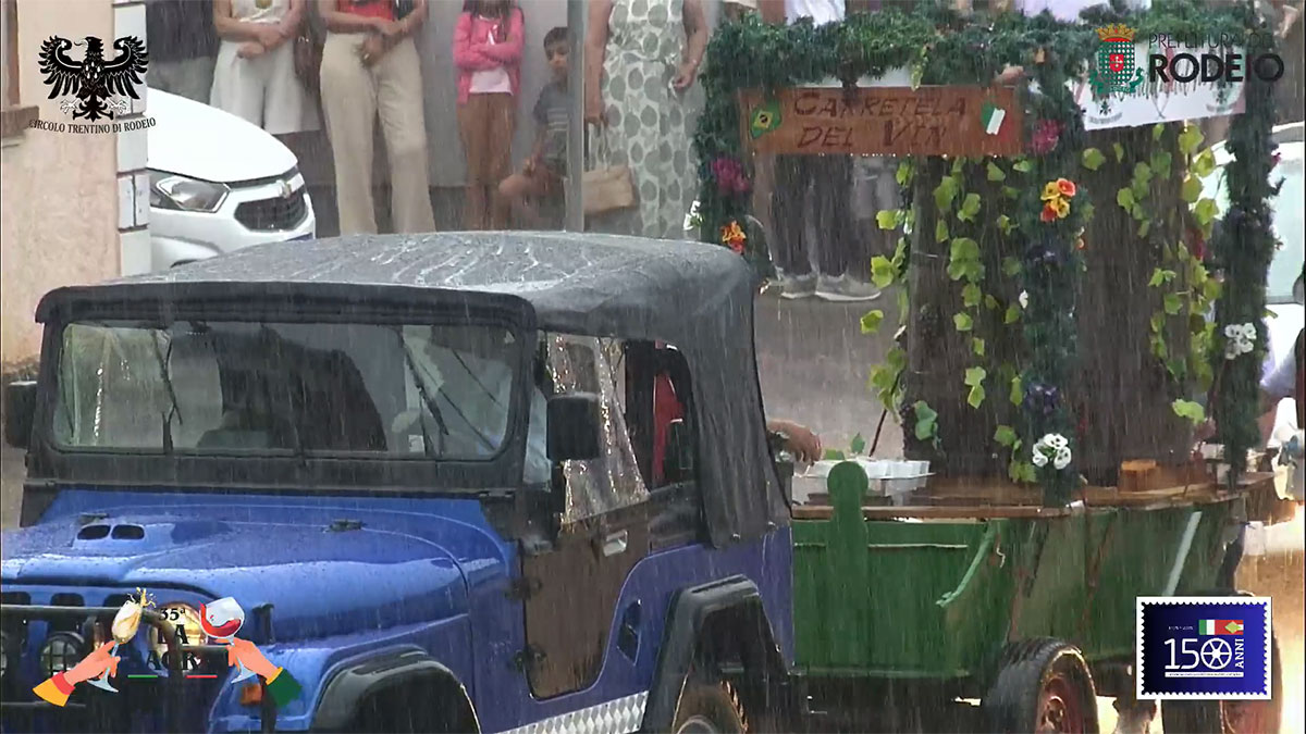 O desfile comemorativo aos 150 anos da Imigração Italiana em Rodeio foi um sucesso na tarde deste sábado, mesmo com a chuva que caiu sobre o município. O público compareceu em peso, acompanhou todo o percurso e vibrou com as atrações que seguiram da frente da Prefeitura Municipal até a Vila Italiana.