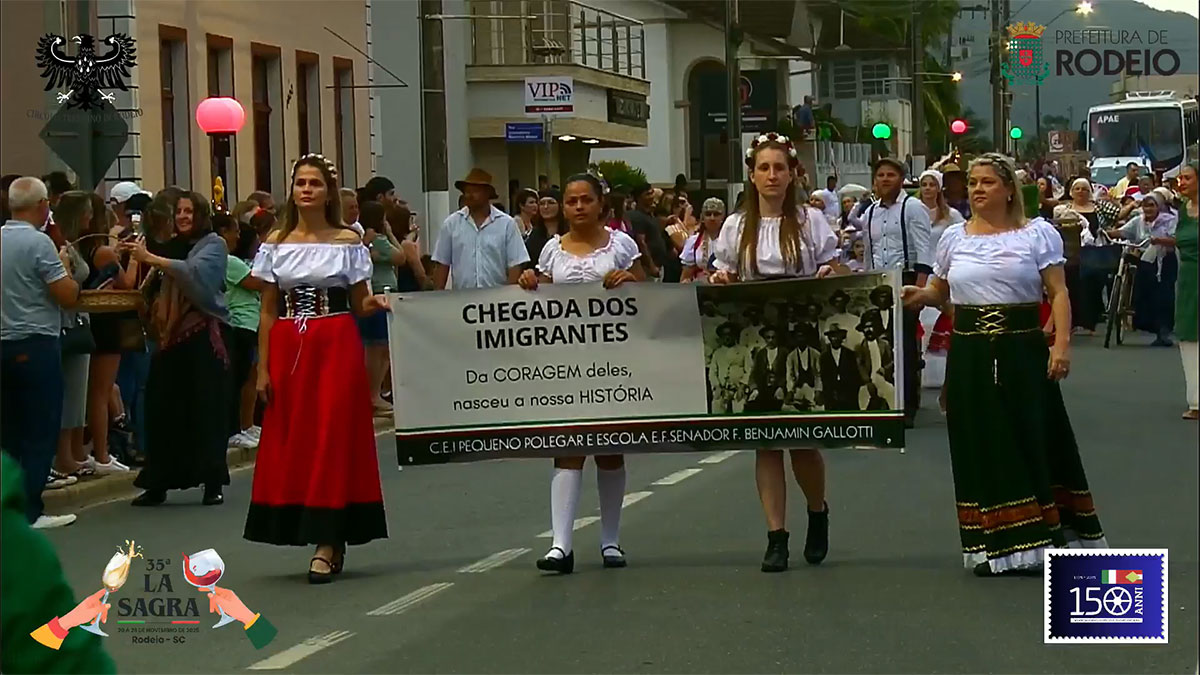 Durante o pronunciamento de abertura do desfile, o prefeito de Rodeio, Nei Paulo Venturi, e o vice-prefeito, Lucas Noriller, destacaram a importância da 35ª edição da La Sagra, reforçando o papel do evento na preservação da cultura e das tradições italianas que marcaram a história do município.