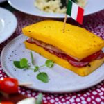 … montaram o X-polenta, tradicional prato da festa onde um sanduíche de calabresa tem as fatias de pão substituídas por uma polenta chapeada. Em 2023 foram vendidos mais de 2,2 mil pratos.