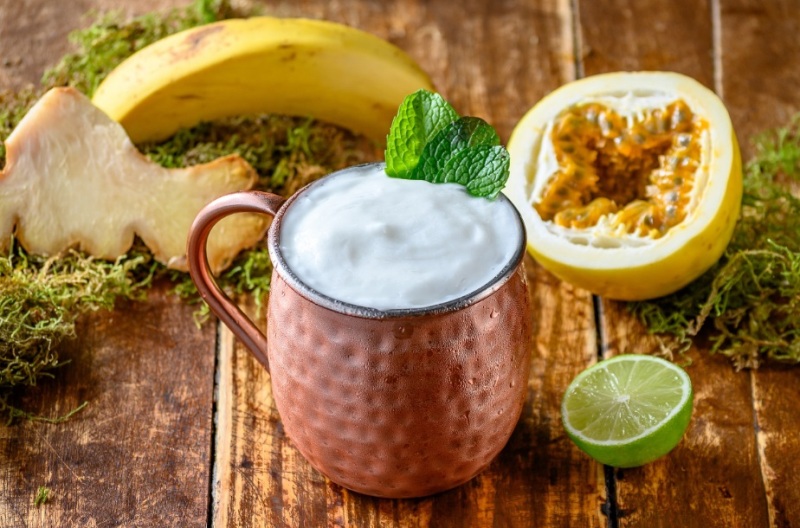Drinques tropicais com xarope de banana verde para curtir no Verão