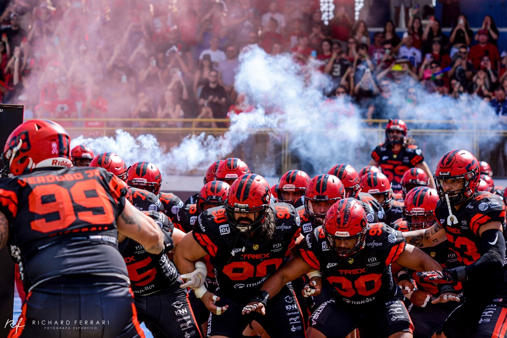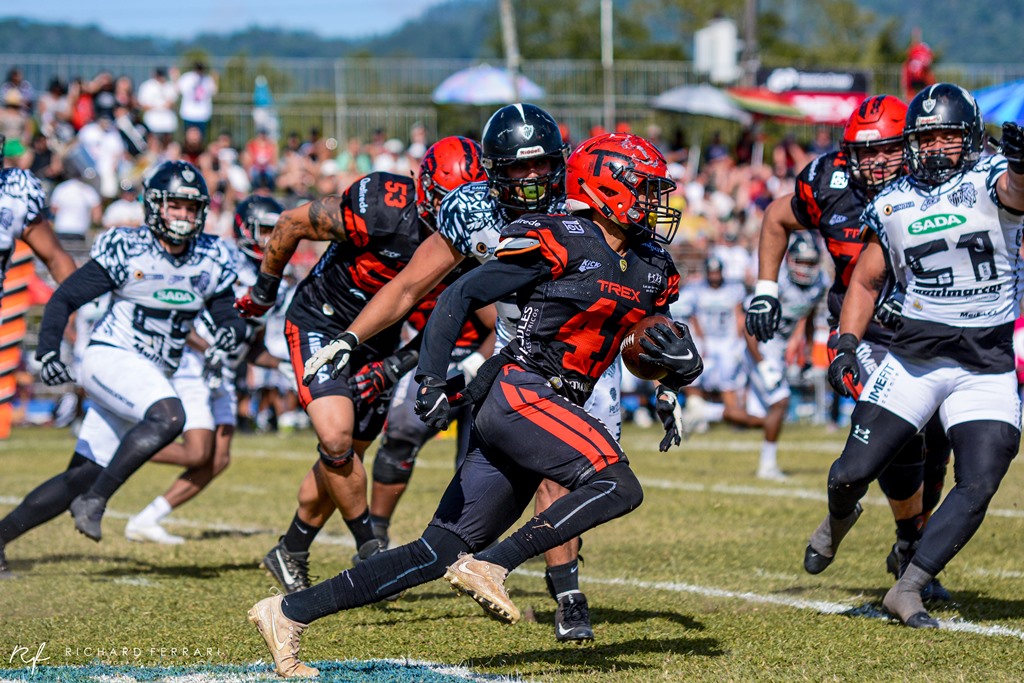 Após cinco anos, o T-Rex está novamente no topo do futebol americano nacional. O time timboense sagrou-se Campeão da Liga BFA 2022 ao vencer o Brasil Bowl XI no sábado (19), no Complexo Esportivo de Timbó. O Rex bateu na decisão o time do Galo FA, que representa o Atlético Mineiro na modalidade, pelo placar de 30 a 20.