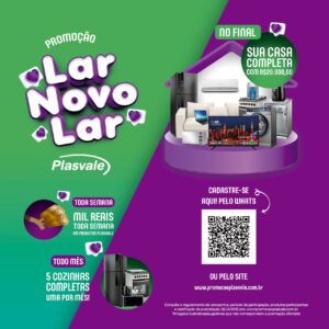 A campanha ocorre pela Loteria Federal, dando maior credibilidade e segurança para os consumidores, e acontece da seguinte forma: basta comprar três produtos da Plasvale e se cadastrar via site www.promocaoplasvale.com.br ou WhatsApp através do número de telefone 47 992930566. Os participantes terão diversas chances de ganhar. Toda semana tem sorteios de R$ 1 mil em produtos Plasvale; uma vez por mês, sorteio de uma cozinha completa; e no final da promoção, no dia 23 de dezembro, o sorteio final tem como prêmio R$ 20 mil para renovar a casa.