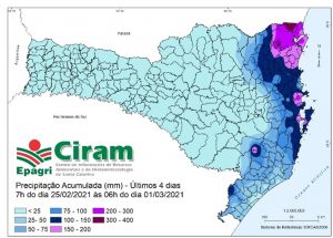 Epagri/Ciram prevê início de março chuvoso em Santa Catarina