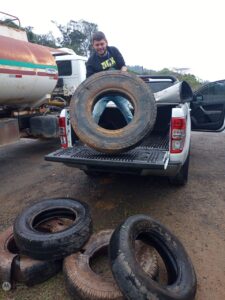 Também foi realizado o recolhimento de pneus nos bairros Tapajós e Nações. Os pneus com água parada tornam-se possíveis criadouros do mosquito, por isso é essencial eliminá-los para evitar a proliferação.