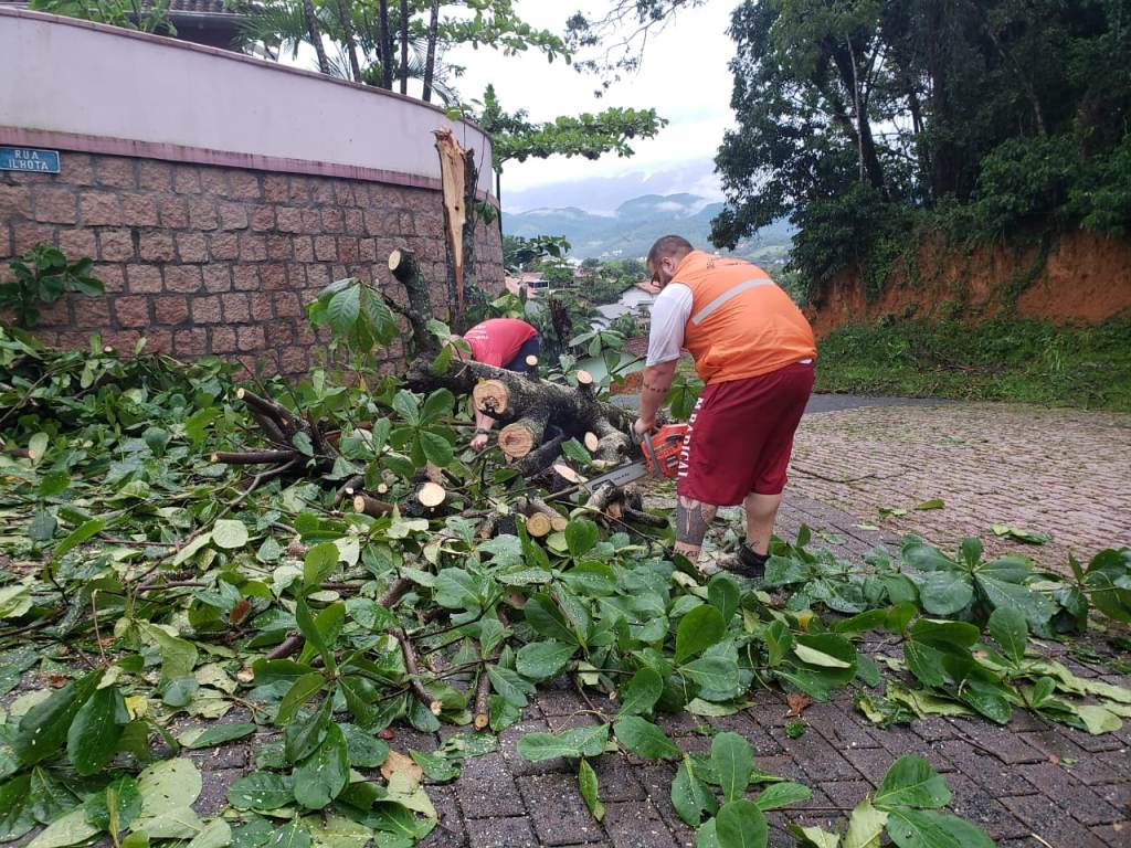 Equipes da Prefeitura de Timbó estão de prontidão atendendo ocorrências causadas pelas fortes chuvas e ventos