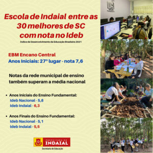 As notas obtidas pela rede municipal de ensino de Indaial também superam a média nacional. Enquanto a nota do Ideb nacional nos Anos Iniciais do Ensino Fundamental é de 5,8, a de Indaial é 6,3. Já nos Anos Finais, a média nacional é 5,1 e a de Indaial, 5,5.
