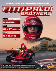 Voltada para crianças de 6 a 11 anos, a formação terá o todo, apenas 12 vagas. As inscrições já estão abertas e podem ser feitas através do link fittipaldibrothers.com.br/curso-pilotagem-infantil. Dúvidas ou mais informações podem ser obtidas pelos telefones (47) 4108-0012 ou (47) 99632-2818.