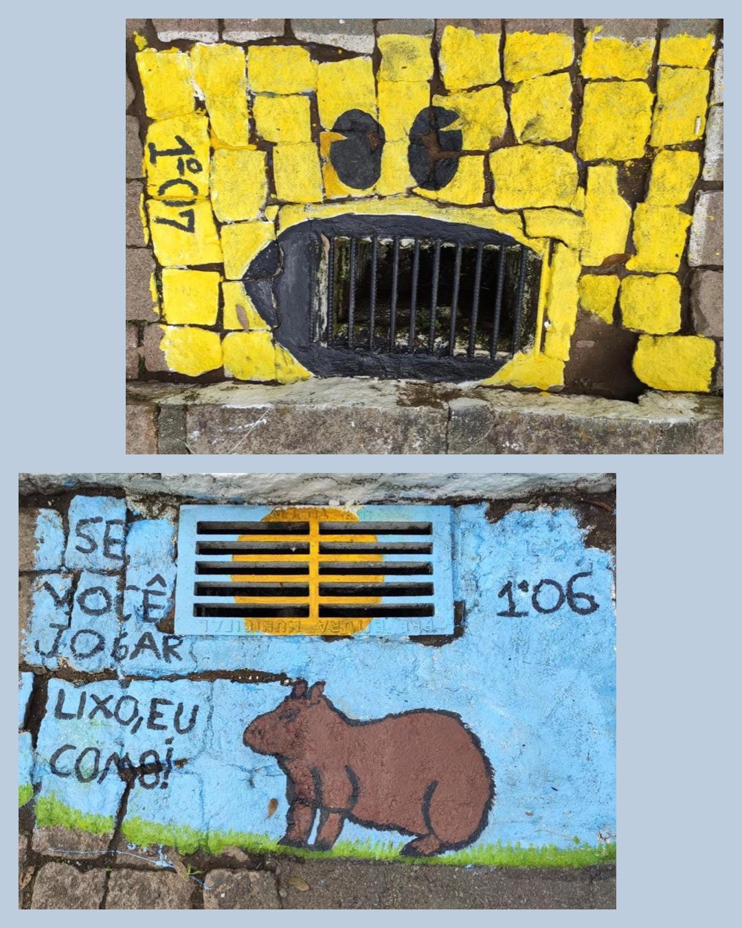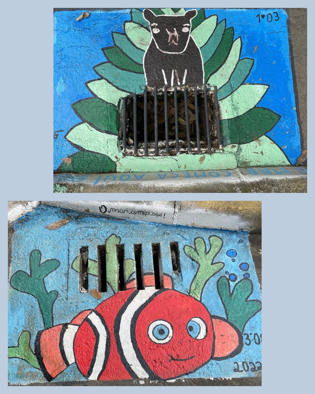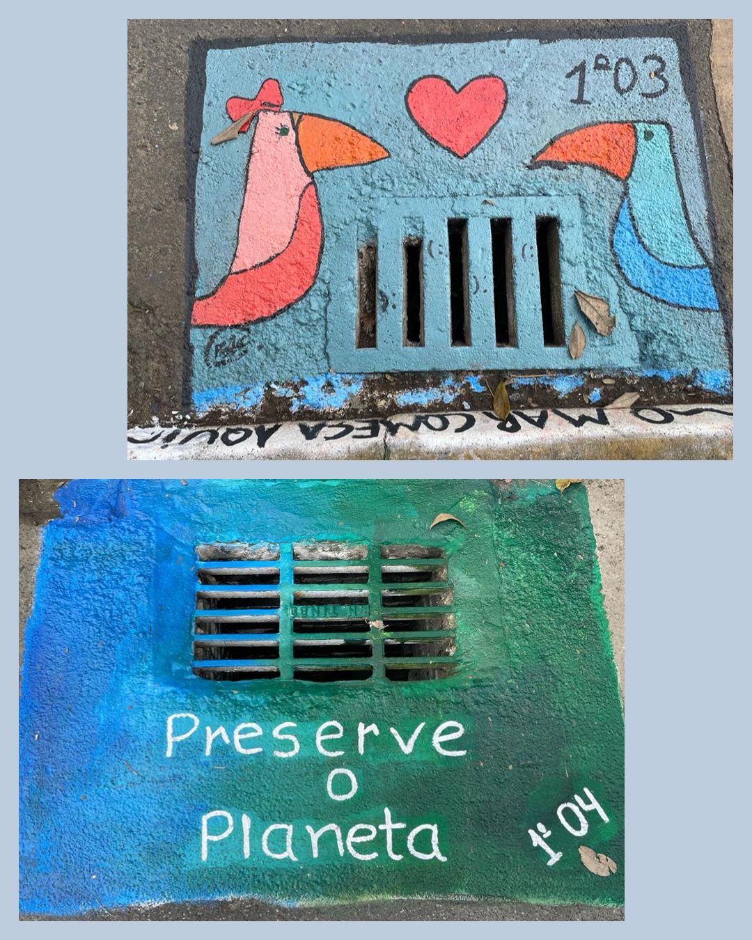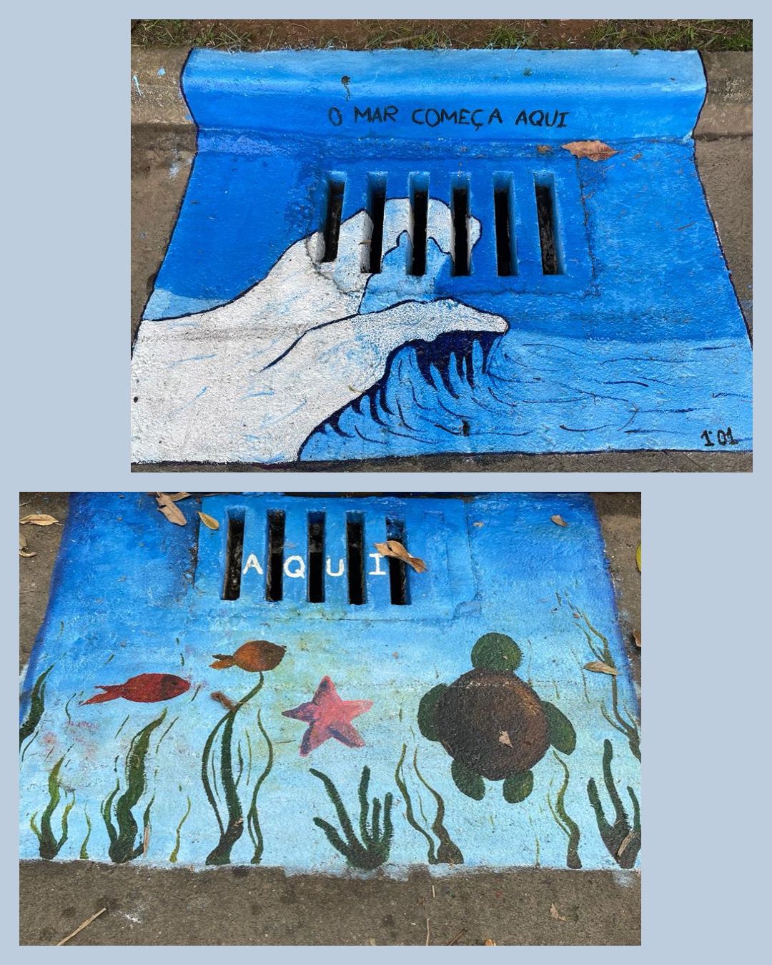 “Esse trabalho é exatamente para chamar a atenção das pessoas para que não joguem lixo nos bueiros, pois a função deles é exatamente o escoamento das águas pluviais. Em muitas bocas de lobo foi escrita a frase ‘O mar começa aqui’, para as pessoas refletirem que essas águas escoam para nosso rio e essas águas acabam desembocando no oceano atlântico”, explica a educadora ambiental, Carla Soraya Groni, que aproveita para agradecer o assessor de direção, Marcos Felippi, e o diretor Juarez M. Galkowski, pelo apoio para realizar a ação.