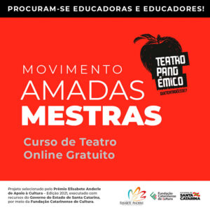 A ação faz parte do projeto Teatro Pandêmico: Que Teatro é esse? Movimento Amadas Mestras, selecionado pelo Prêmio Elisabete Anderle de Apoio à Cultura, e é voltada para educadoras (es) das cidades de Vargem, Campo Belo do Sul, Bocaina do Sul, Bom Jardim da Serra e Urupema