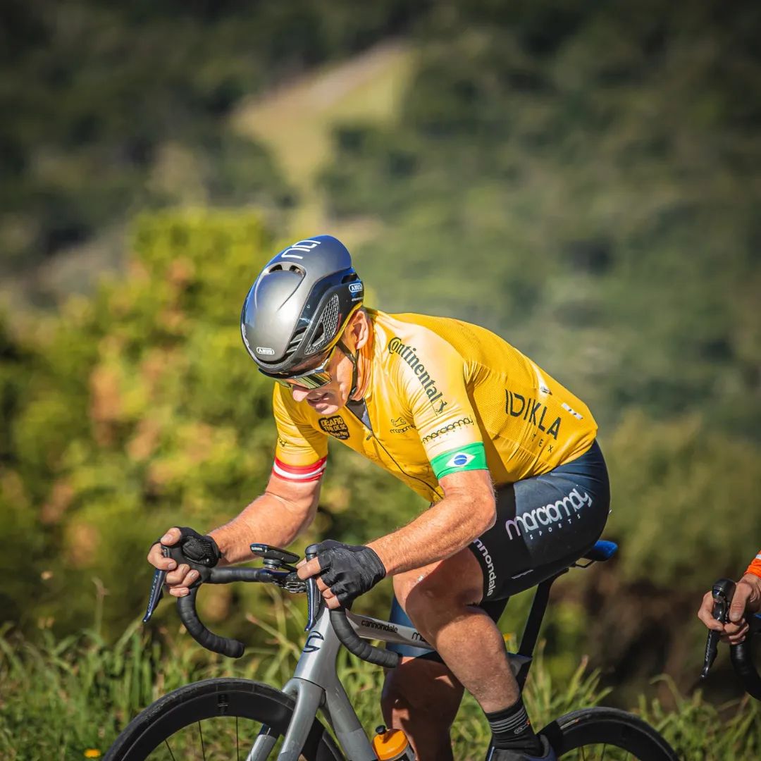 Para o desafio, May criou um uniforme que homenageia o Tour de Santa Catarina com uma camisa amarela, cor da jersey usada pelo líder da classificação geral da mais famosa corrida por etapas do Brasil e tantas vezes usadas por May em suas inúmeras participações na prova.