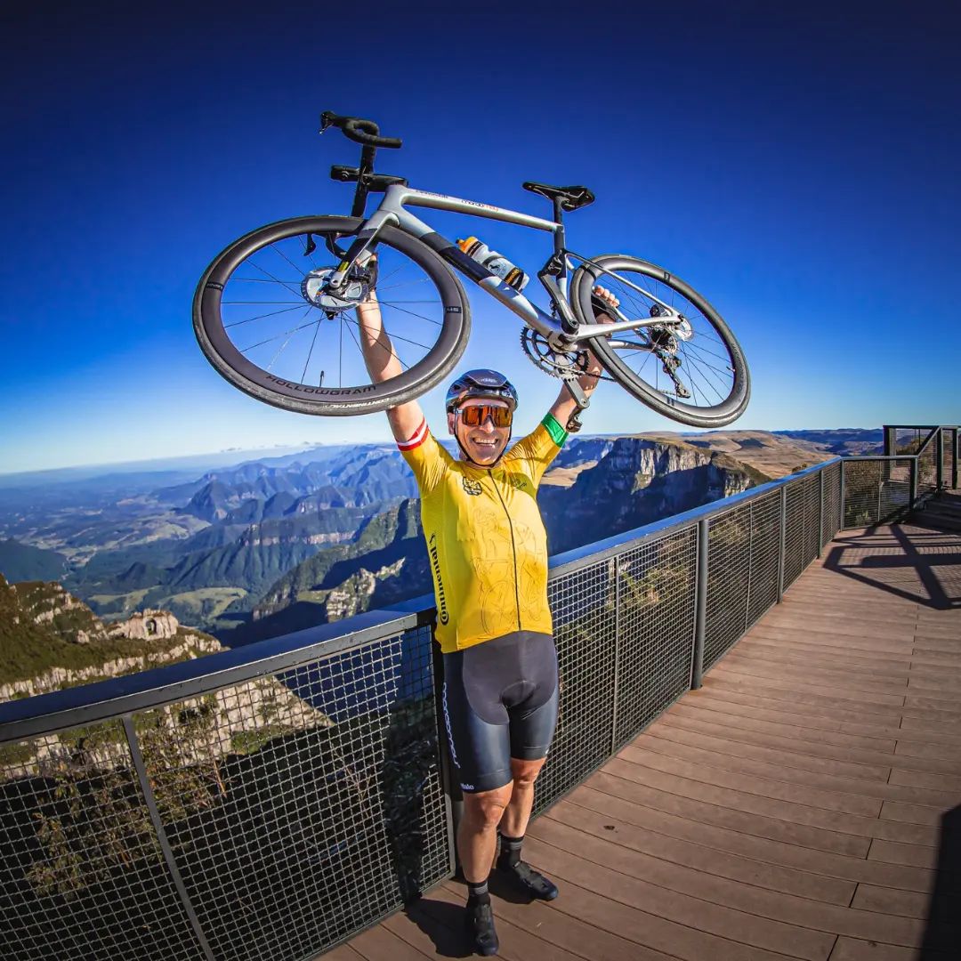 André “Banana” por sua vez tinha o sonho de pedalar na Serra do Rio do Rastro, até o alto do Mirante, e demonstrou força ao decidir acompanhar a dupla até o final da jornada, no portão do Sindacta II, dentro do Parque Nacional São Joaquim. A subida final até o top do Morro da Igreja tem um desnível de 900 metros com trechos de até 30% de inclinação.