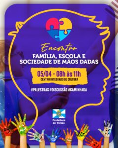 A Secretaria de Educação de Timbó reforça o convite a comunidade para participar do evento “Família, Escola e Sociedade de Mãos Dadas”, um encontro inspirador que reforça a importância da colaboração entre família, escola e sociedade na construção de um ambiente mais inclusivo e acolhedor.
