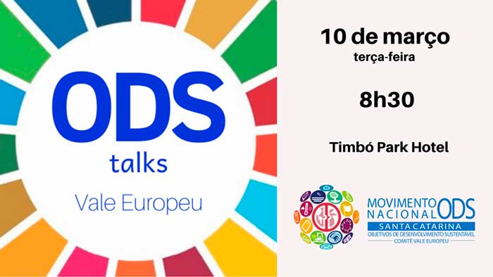 A Coordenação do Comitê Vale Europeu, do Movimento Nacional ODS Santa Catarina convida a comunidade em geral e, em especial, representantes de entidades públicas municipais, para participarem do evento ODS Talks – Vale Europeu. Com o objetivo de tornar os Objetivos de Desenvolvimento Sustentável conhecidos e estimular pessoas e organizações a movimentarem-se para que o desenvolvimento sustentável aconteça em Santa Catarina, o evento ainda pretende ampliar o quadro de signatários. A programação acontece no