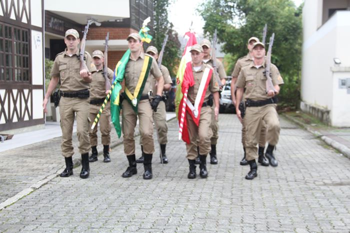 A Polícia Militar de Santa Catarina completou no dia 05 deste mês de maio 187 anos de história. Para comemorar a data vários atos protocolares foram realizados por todo o estado. Nesta manhã de quarta-feira (11), o protocolo aconteceu no município vizinho de Indaial. Oportunidade em que foram promovidos oficiais e praças, além de entregas de medalhas e títulos honoríficos de Amigo da PMSC.