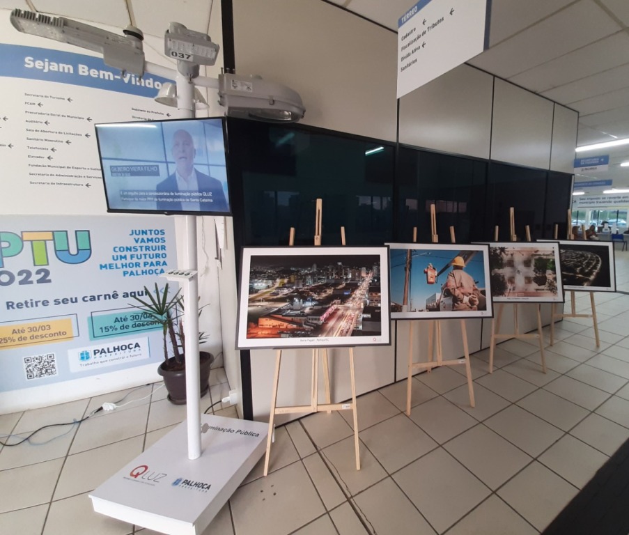 Parte do resultado do trabalho de quase dois anos da PPP de iluminação pública em Palhoça pode ser visto na exposição “Palhoça Iluminada”, montada no hall de entrada da Prefeitura, com visitas das 8h às 19h. São retratos feitos pelo fotógrafo José Somensi, que mostram as equipes da Qluz em campo e os resultados obtidos com a modernização do parque.