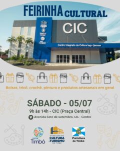 A Fundação de Cultura e Turismo de Timbó convida a comunidade para prestigiar mais uma edição da Feira Cultural, que acontece neste sábado, dia 5 de julho, no Centro Integrado de Cultura Ingo Germer (CIC).