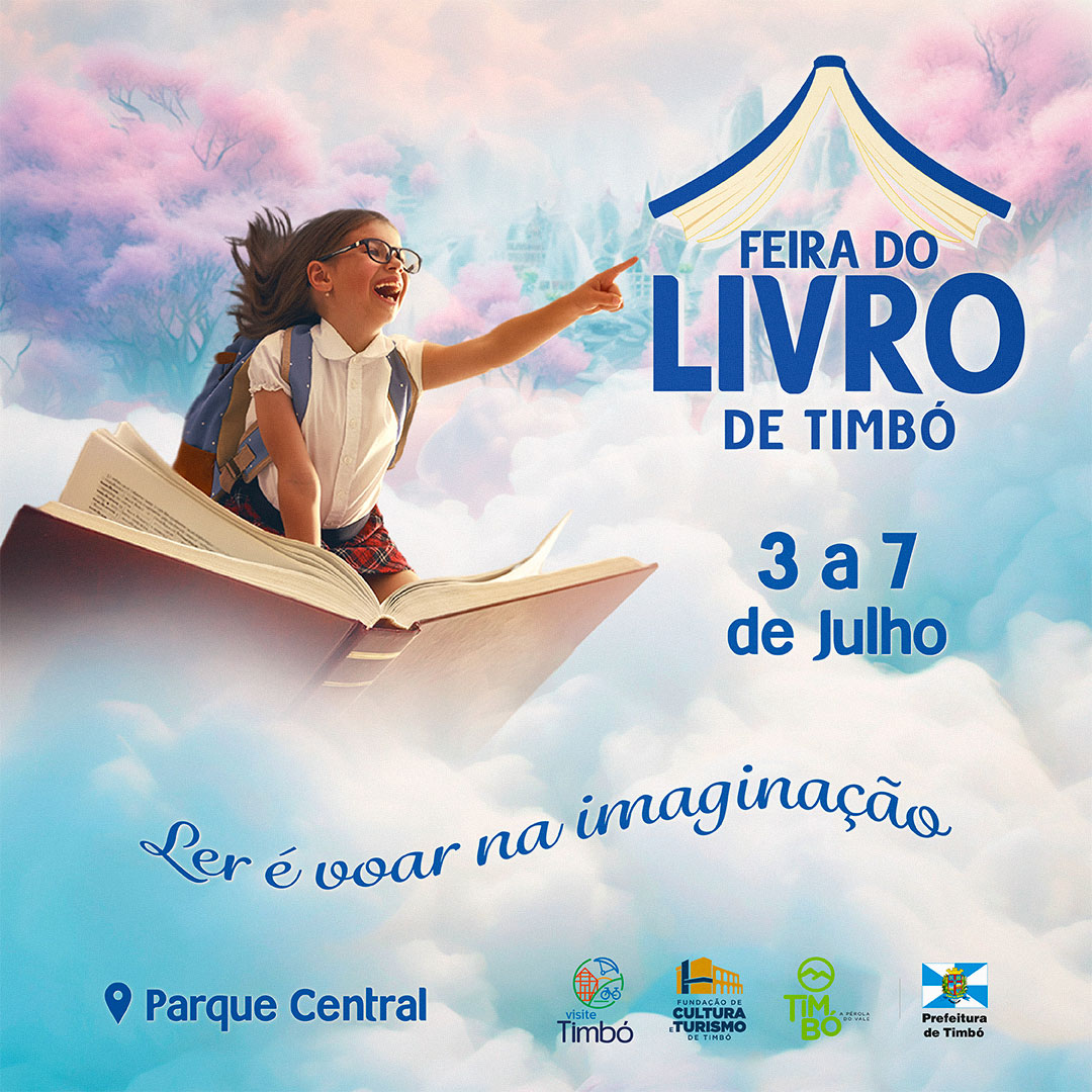 A Feira do Livro de Timbó acontece entre os dias 03 e 07 de julho, com uma programação recheada de atrativos voltados à literatura no Parque Central e no Centro Integrado de Cultura Ingo Germer.