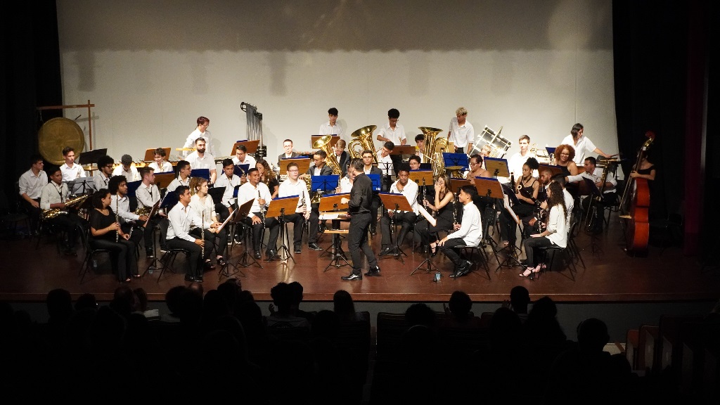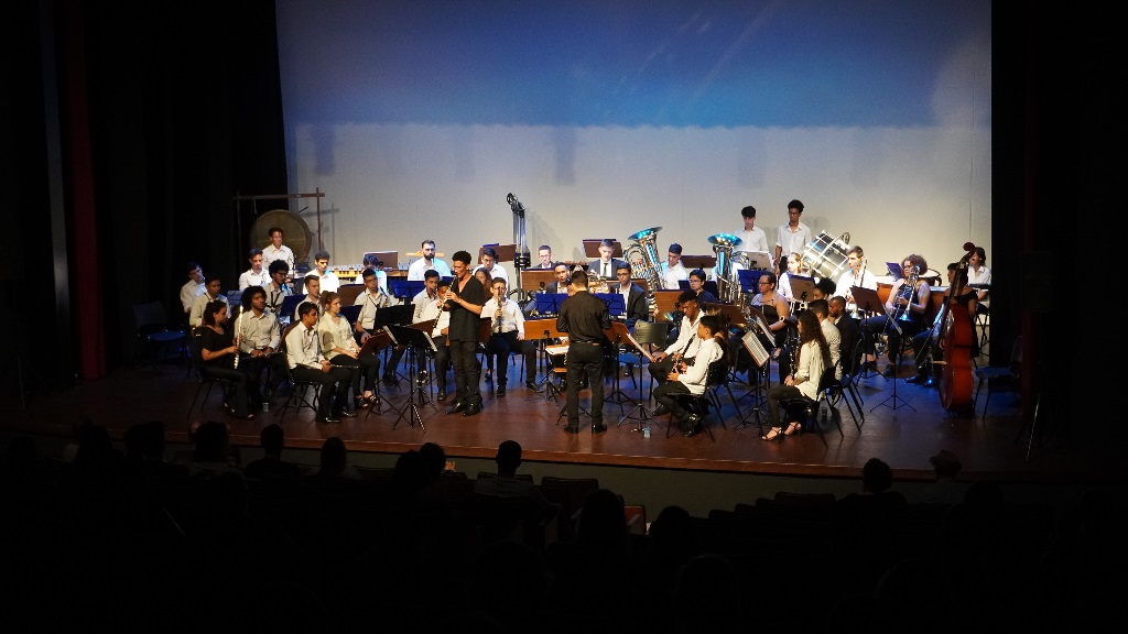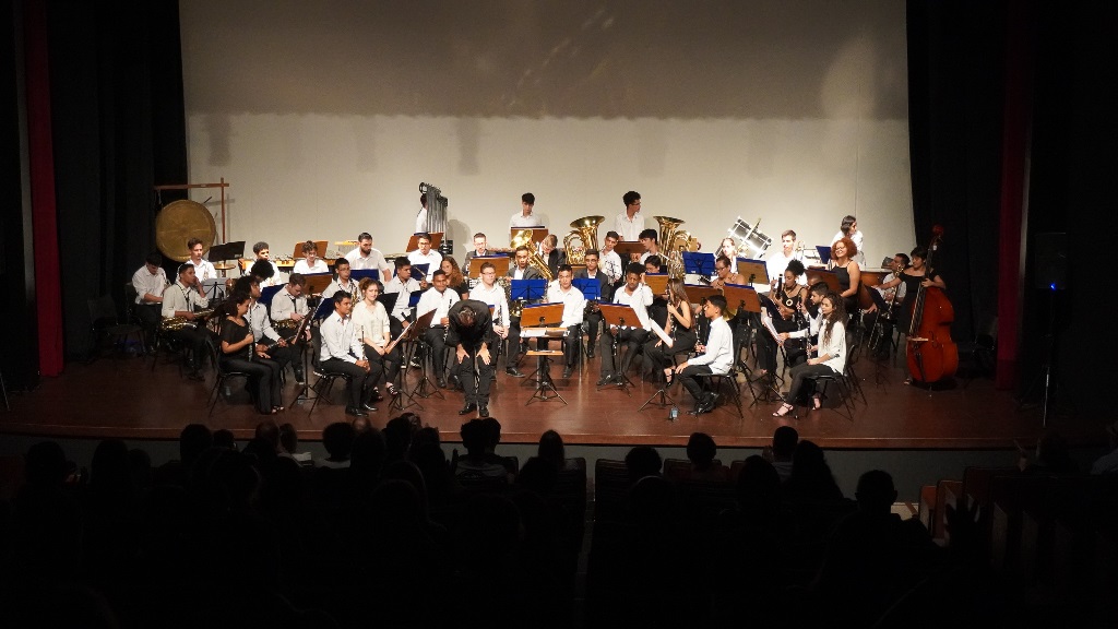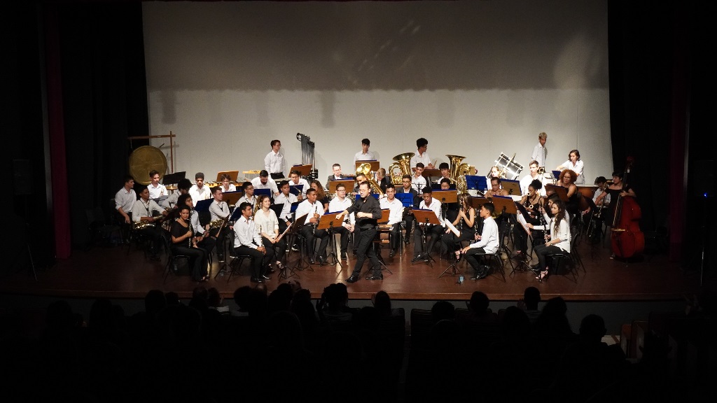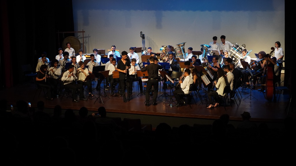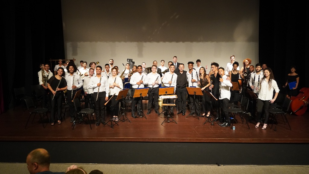 No palco, a Banda Sinfônica do Festival Internacional de Música de Santa Catarina (FEMUSC) trouxe interpretações que contavam de forma divertida e contagiante histórias do cotidiano.