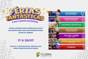 Depois de muito tempo se dedicando às atividades escolares, as férias chegam como um presente para a garotada! E a folga no ano letivo, que acontece no mês de julho, tem um sabor todo especial para o Floripa Shopping! Entre os dias 17 e 30 deste mês, o empreendimento localizado na SC 401 preparou as Férias Fantásticas, que reúne diversas operações para crianças, adolescentes e os pais se divertirem ao máximo, com a segurança e a tranquilidade de um espaço indoor.