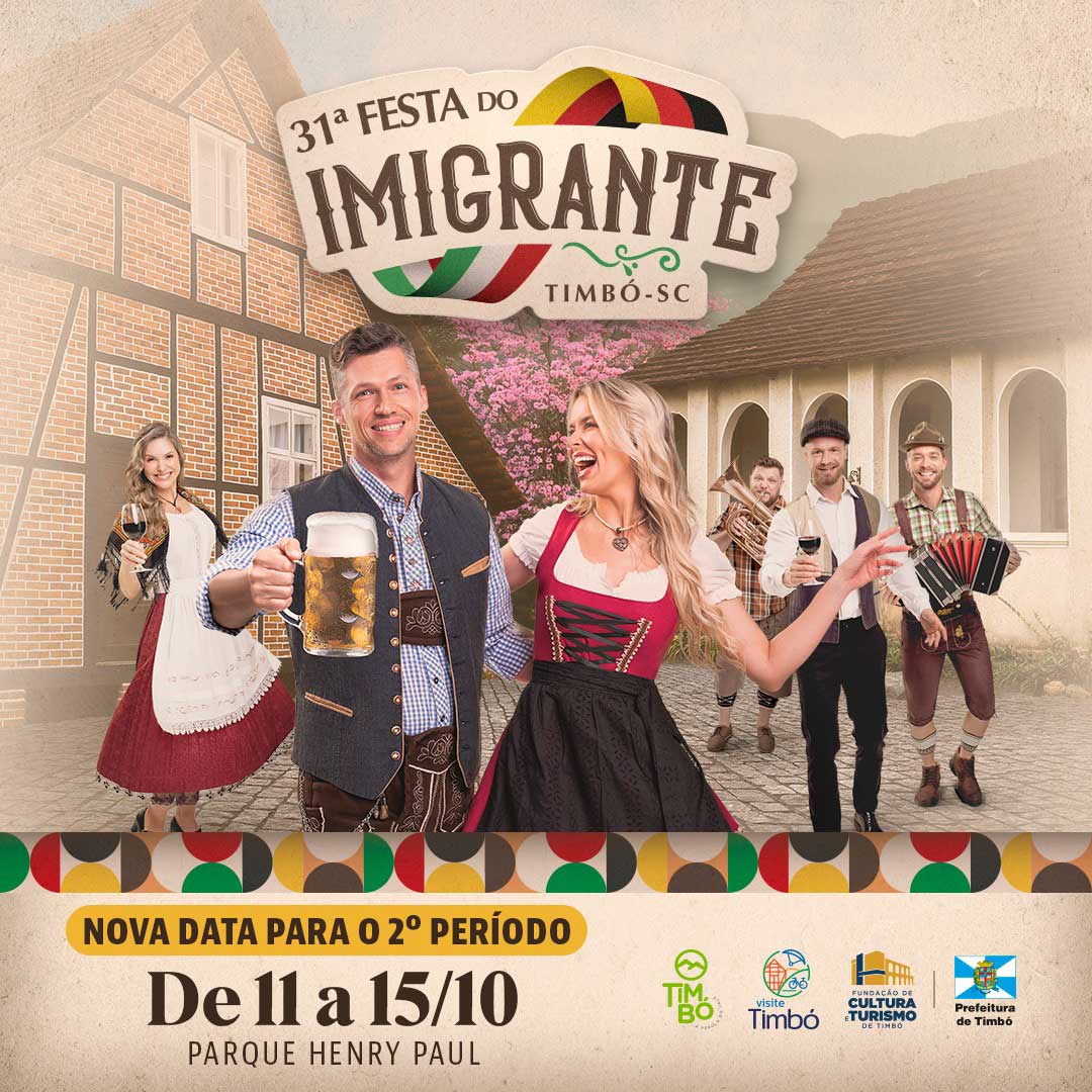 Conforme anunciado na semana passada, a 31ª Festa do Imigrante de Timbó será retomada nesta quarta-feira, dia 11 de outubro, no Parque Henry Paul.