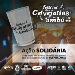 Além de muita cerveja e música para degustar, o Festival das Cervejarias de Timbó também é sinônimo de solidariedade. O evento, que acontece entre os dias 13 e 16 de abril no Parque Central, irá destinar R$ 1 real de cada copo do Festival vendido para o Hospital e Maternidade Oase.