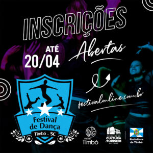Um dos principais eventos de dança do Estado, o Festival de Dança de Timbó, já está com inscrições abertas. O evento acontece de 19 a 21 de maio.