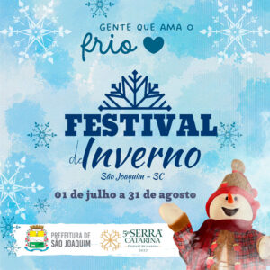 Inicia na próxima sexta-feira (01), o Festival de Inverno 2022 de São Joaquim. O evento é organizado pela Prefeitura de São Joaquim, através da Secretaria de Turismo e entidades ligadas ao setor de turismo da cidade.