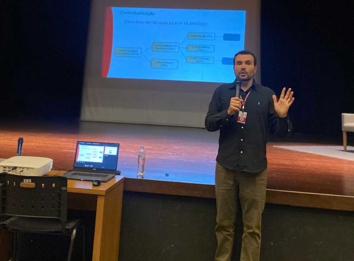 A programação também contou com a participação de Silvio Bhering Sallum, auditor fiscal de controle externo do Tribunal de Contas do Estado de Santa Catarina (TCE/SC), que abordou aspectos do ICMS Educação, tema que vem ganhando relevância nos debates sobre a distribuição de recursos e desempenho educacional nos municípios.
