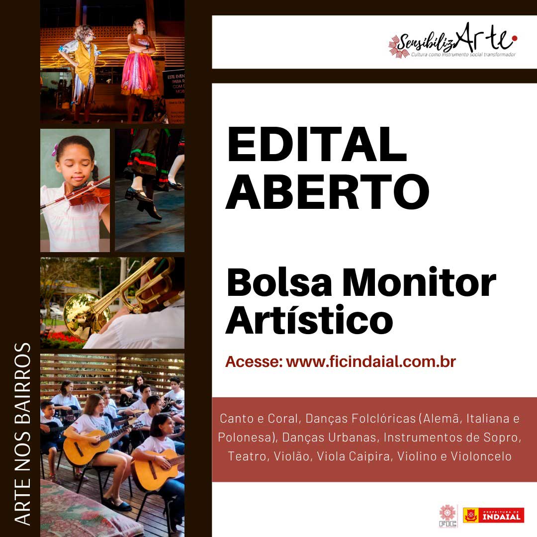O Programa Bolsa Monitor Artístico foi instituído pela Lei nº 5.731, de 12 de novembro de 2019. Visa beneficiar a formação de novos profissionais nas variadas áreas oferecidas pela FIC, colaborando com a difusão da arte por meio do fomento à cultura e seus vários segmentos e a democratização do acesso à cultura pelo cidadão.