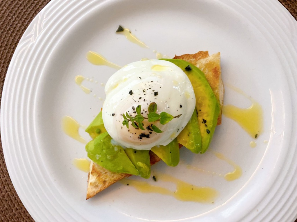 Torre o pão com um fio de azeite de oliva. Depois, disponha o abacate sobre o pão. Em seguida coloque o ovo pochê e regue com azeite. Tempere com sal e pimenta a gosto.