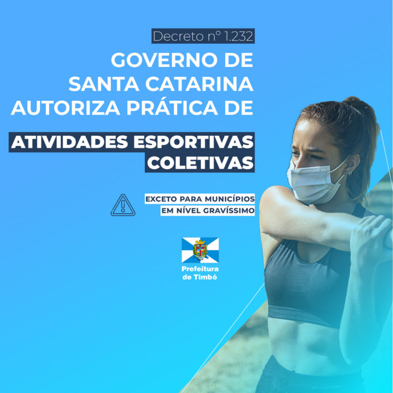 O novo decreto do Governo do Estado autoriza a prática de atividades esportivas coletivas de cunho recreativo em Santa Catarina, exceto para municípios em nível gravíssimo, como é o caso de Timbó. A medida libera competições e afins, com ou sem contato entre as pessoas, em qualquer local público ou privado.