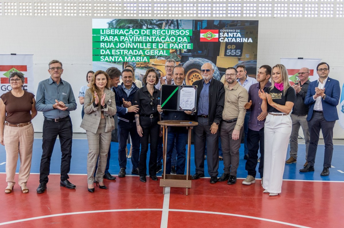 O governador anunciou também a liberação de R$ 1,5 milhão para a pavimentação da Rua Joinville e de parte da Estrada Geral Santa Maria. A melhoria das vias vai garantir mais mobilidade, segurança viária e qualidade de vida à população, além de favorecer o desenvolvimento econômico local.