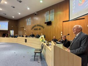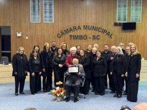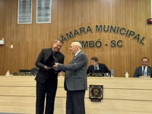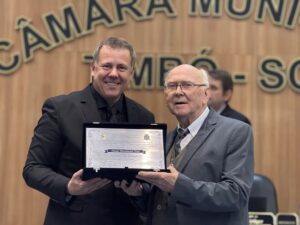 O título foi concedido através do Decreto Legislativo nº 01/2025, de autoria do vereador Clauder Geike. “Com sensibilidade, talento e dedicação, ajudou a construir não apenas a história e cultura musical de Timbó, mas que também tocou muitas vidas com sua generosidade e seu amor pela arte. E é por isso que hoje, com muito orgulho, entregamos esse título de cidadão honorário ao senhor. Porque o senhor já é, há muito tempo, um cidadão timboense – pelo coração, por toda a sua trajetória até aqui”, disse Clauder durante seu discurso.