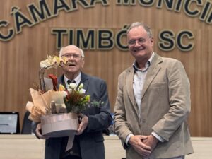 O homenageado agradeceu o título. “É um momento bem especial para mim. Já me senti, antes dessa homenagem, que tinha o coração em Timbó. Chegaram outros convites, de outras cidades, mas eu disse sempre: eu tenho um compromisso de ficar em Timbó. Sou muito grato por esse momento”.
