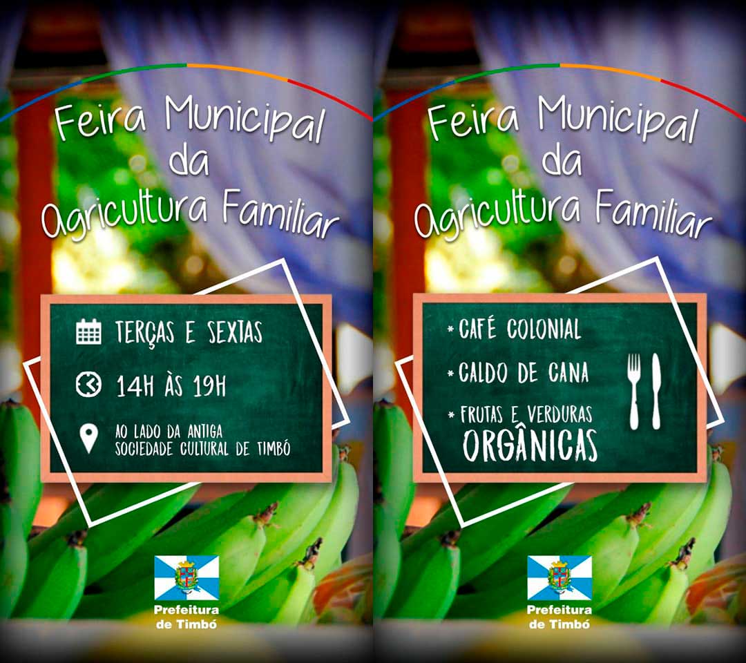Junho 12, 2020A Feira Municipal da Agricultura Familiar está acontecendo normalmente em Timbó. Todas as medidas de higienização e prevenção foram tomadas para garantir que seu atendimento e também a sua compra sejam os mais seguros possíveis.