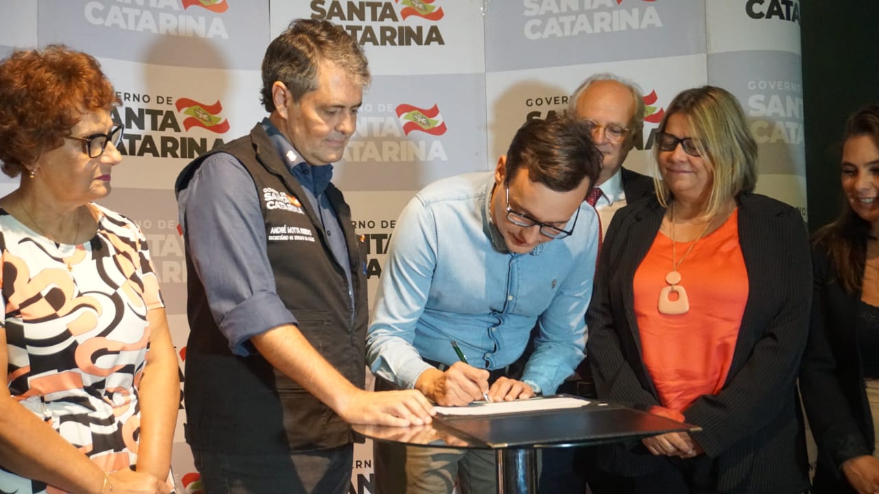 Foi oficializada na quarta, 30, a assinatura de convênio entre o Hospital Beatriz Ramos e o Governo Estadual para o repasse de recursos destinado à UTI definitiva. A confirmação veio após agenda da administradora do HBR, Adriane Ferrari, e do prefeito de Indaial, André Moser, juntamente ao Governador, Carlos Moisés, e o Secretário de Estado da Saúde, André Motta Ribeiro.