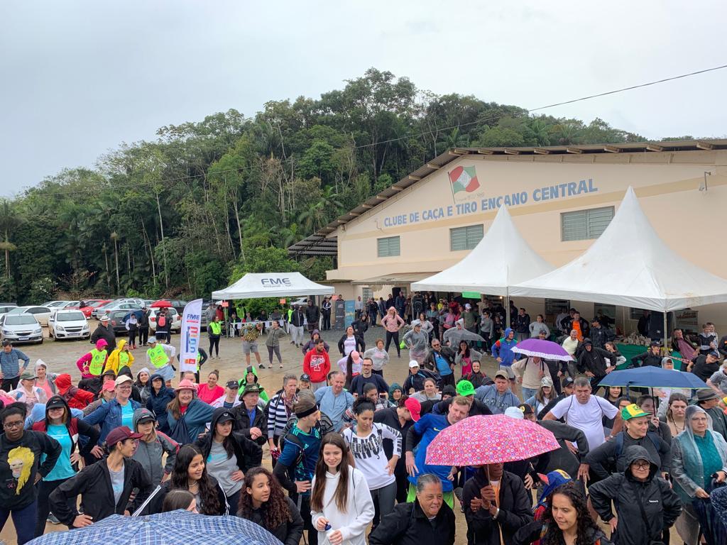 Nem a chuva impediu a vinda de caminhantes de diversos municípios catarinenses e paranaenses para a 7ª Caminhada Encantos do Vale, em Indaial. O evento aconteceu nesse domingo, 25 de setembro, na região do Encano Central, umas das áreas mais lindas e abundantes em natureza da cidade.
