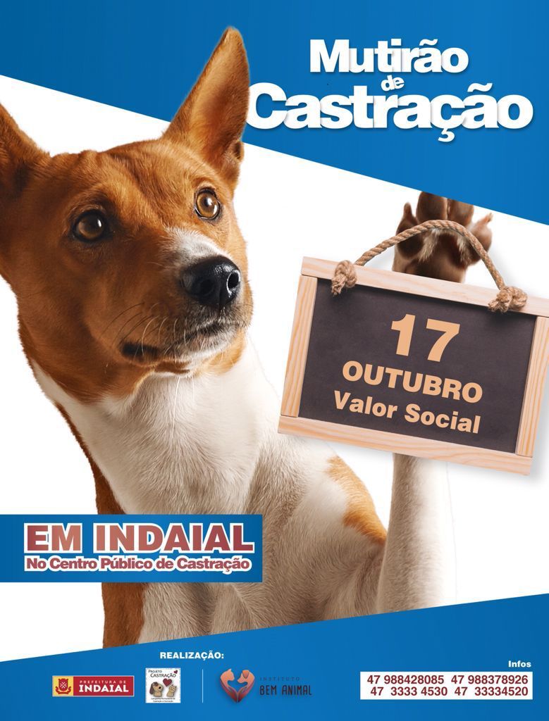 Estão abertas as inscrições para o oitavo Mutirão de Castração Animal, realizado através de parceria entre a Prefeitura de Indaial e o Instituto Bem Animal. A ação acontecerá no dia 17 de outubro, no Centro Público (rua Marechal Deodoro da Fonseca, 4.600). Gatos e cães poderão ser castrados. No caso de cães, as exceções são para as raças pug, bulldog, pequinês e lulu-da-pomerânia.