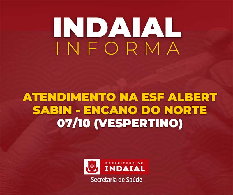 Na tarde desta quinta, 7 de outubro, alguns atendimentos disponibilizados na ESF Albert Sabin, no Encano do Norte, precisarão ser direcionados para outras unidades em virtude da interrupção do fornecimento de energia elétrica. Na ocasião, a Celesc realizará uma manutenção programada no bairro.