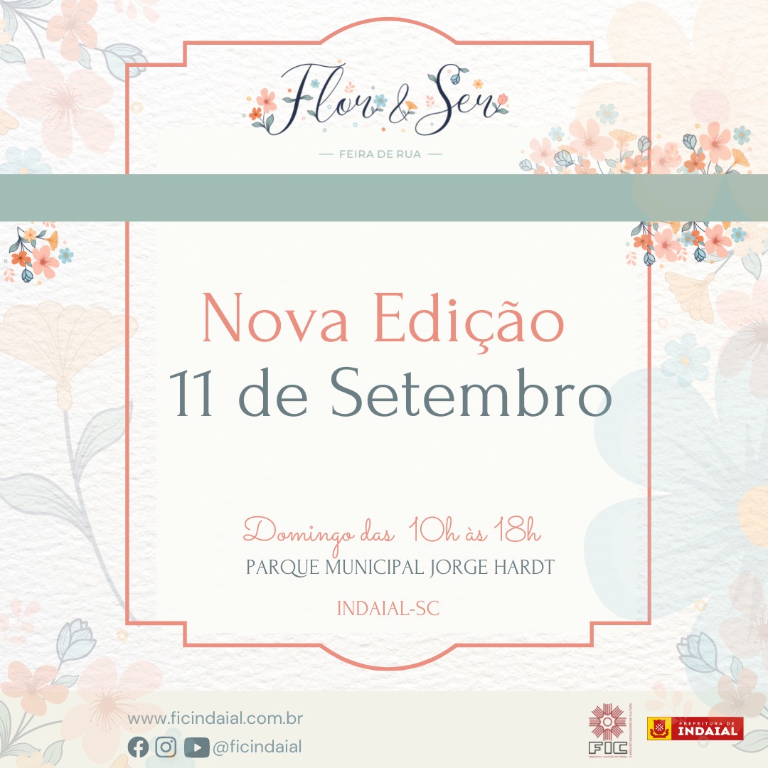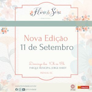 A Fundação Indaialense de Cultura promove neste domingo, 11 de setembro, a 4ª edição da Feira de Rua Flor&Ser 2022. O evento acontecerá das 10h às 18h, no Parque Municipal Jorge Hardt.