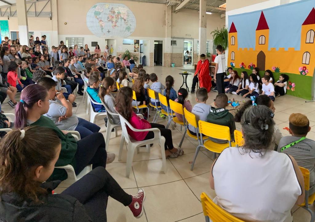 A Turnê Literária, promovida pela Secretaria de Educação de Indaial, por meio da Casa do Professor – Espaço Educa +, está em sua reta final e segue até esta terça, 1º de novembro. O movimento envolve alunos e profissionais das 14 Escolas Municipais e 26 Unidades de Educação Infantil com apresentações intercaladas entre as instituições. Na terceira semana do evento, de 24 a 27 de outubro, 16 apresentações ocorreram com espetáculos diversos.