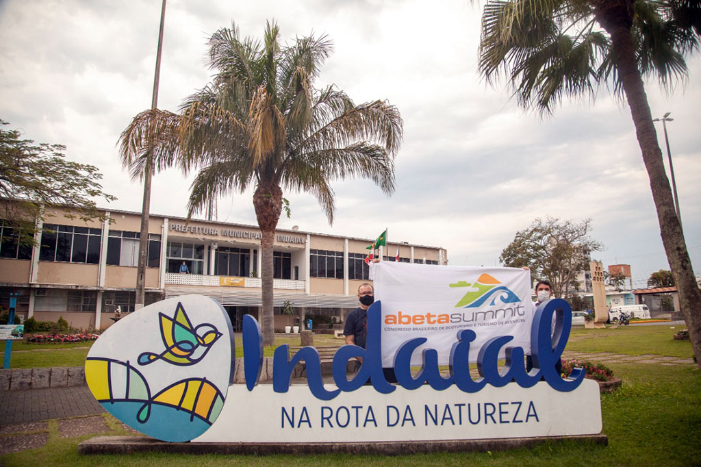 O prefeito de Indaial, André Moser, recebeu na terça, dia 21, pelas mãos da Gestora de Cultura e Turismo de Rio dos Cedros, Giovana Lenzi, a bandeira do Abeta Summit 2021 – XVIII Congresso Brasileiro de Ecoturismo e Turismo de Aventura, considerado o maior evento do gênero no País e que será realizado pela primeira vez em Santa Catarina e na região turística do Vale Europeu.