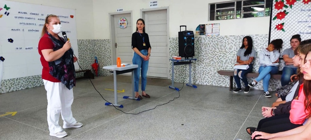 No último dia 16 de março, a psicóloga da Secretaria de Educação de Indaial, Veridiana Simette Grabas, em parceria com a professora de Ciências, Iraci Alves, promoveu uma ação psicoeducativa para alunos de duas escolas da rede municipal de ensino relacionada aos aspectos biopsicossociais da adolescência, buscando esclarecer questões dessa fase do desenvolvimento.