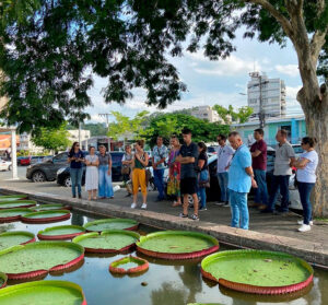 Finalizando o encontro, os participantes conheceram a Praça da Prefeitura de Indaial, onde está localizado um reservatório com vitórias-régias.