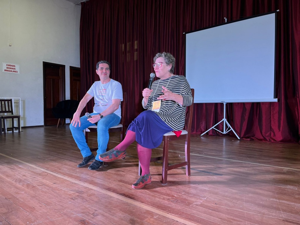 Já na Sociedade Recreativa Indaial, as atividades na sexta (7) contaram com apresentações da Orquestra de Câmara de Indaial e do Coral da FIC, lançamento do nome da Casa do Professor em homenagem ao educador Almir Kuehn e uma palestra com Claudio Ledesma (Argentina), contador de histórias, escritor e crítico de Literatura Infantil. No sábado (8), a programação na Sociedade teve continuidade com apresentações do CEI Vale dos Alecrins, Banda Municipal de Indaial, Grupo Dançaventura, UEI São Judas Tadeu e Grupo Circo Iris, além de palestras com Cleber Fabiano (Paraná), escritor de livros teóricos sobre crítica da Literatura, doutor e mestre em Educação; e com Regina Rennó (Minas Gerais), artista plástica, ilustradora, escritora, roteirista e diretora de cinema.