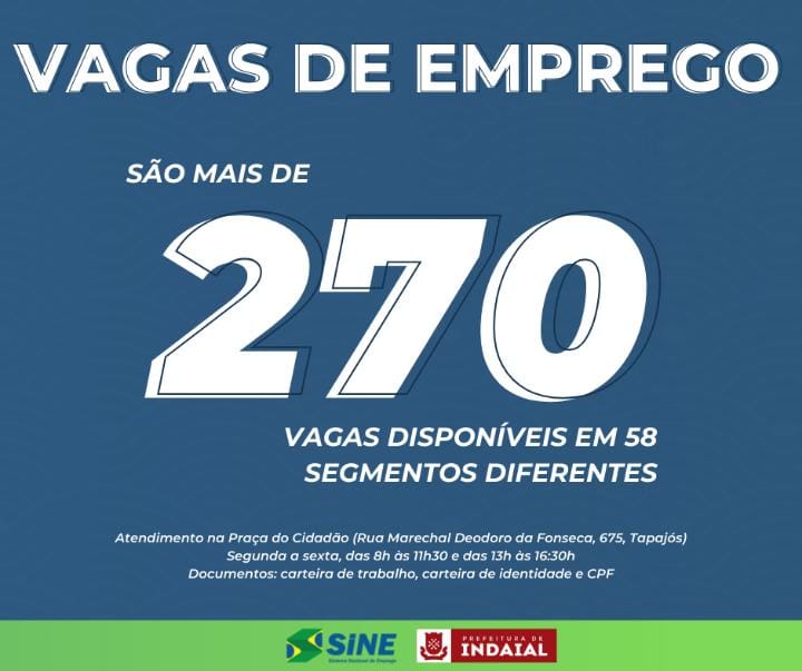 O Sine de Indaial comunica que há mais de 270 vagas de emprego disponíveis em 58 segmentos diferentes, confira: