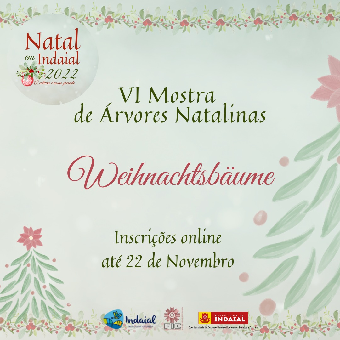 Com o intuito de fortalecer a temática do Natal em Indaial, aproximando as pessoas em um dos períodos culturais e fraternais mais significativos da história da humanidade, a Prefeitura, por meio da Coordenadoria de Desenvolvimento Econômico, Eventos e Turismo e da Fundação Indaialense de Cultura, irá promover a 6ª Mostra de Árvores Natalinas – Weihnachtsbaume. Ela acontecerá na Praça Municipal Prefeito João Hennings Filho (Praça da Prefeitura).
