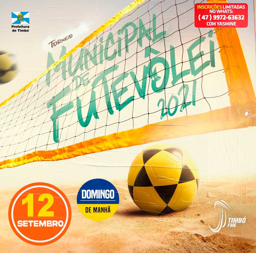 A Fundação Municipal de Esportes (FME) de Timbó informa que estão abertas as inscrições para o Torneio Municipal de Futevôlei. O evento acontece no dia 12 de setembro.