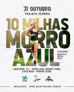 Encerram amanhã, dia 26 de outubro, as inscrições para as 10 Milhas do Morro Azul, que acontece no dia 31 de outubro. As inscrições podem ser feitas no site Desafio Agora.