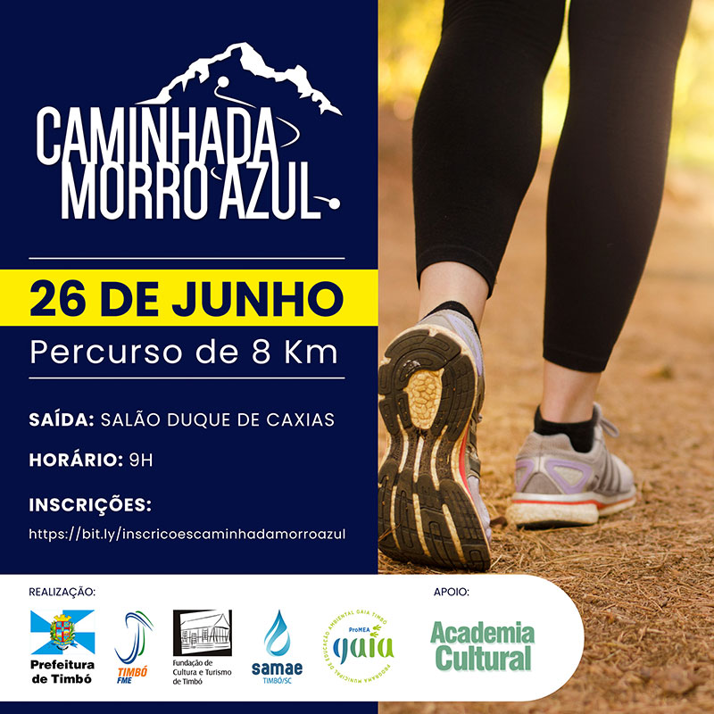 A Caminhada Morro Azul é uma realização da Prefeitura de Timbó, através da Fundação Municipal de Esportes (FME Timbó), Fundação Municipal de Cultura e Turismo, SAMAE Timbó, e Departamento de Meio Ambiente.